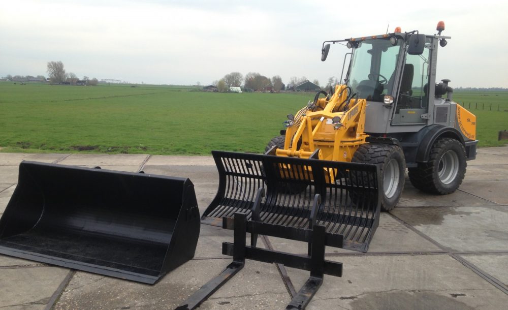 G.C. Verweij heeft Werklust shovels, een midi-kraan, zwenklader, transporters en diverse hulpmiddelen, zoals vorken, pallethaken, betonkubels en hydraulische rubberenschuifslab.